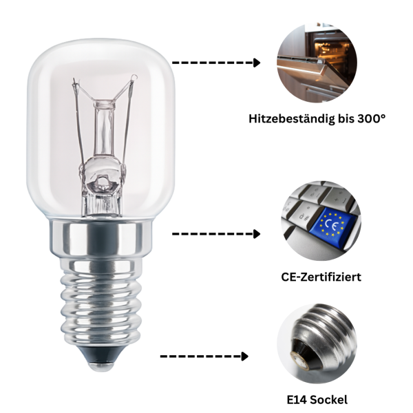 2er-Set E14 Glühbirnen – passend für Backöfen & Kühlschränke