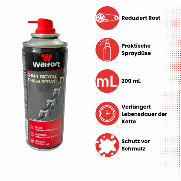 Eine gut gepflegte Kette ist das Herzstück jedes Fahrrads und Motorrads. Mit unserem Fahrrad Kettenreiniger, Kettenspray und Kettenöl erhalten Sie ein 3-in-1-Produkt, das Ihre Kette nicht nur reinigt, sondern auch schmiert und effektiv vor Rost und Korrosion schützt.