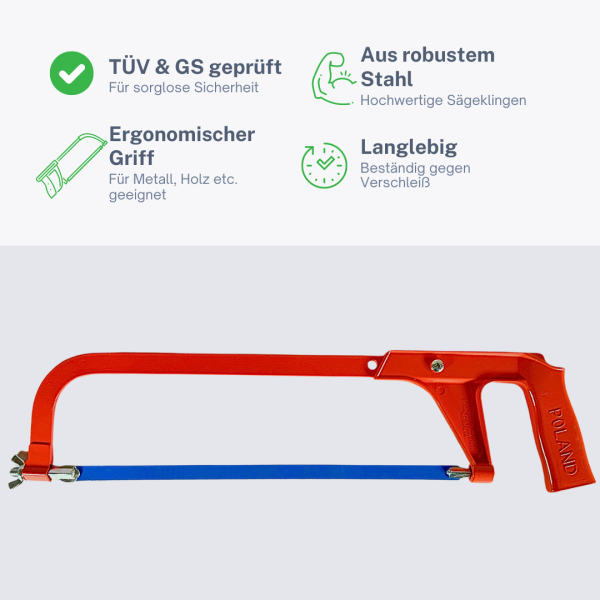 • Bügelsäge / Metallsäge 30 cm für Metall & Garten