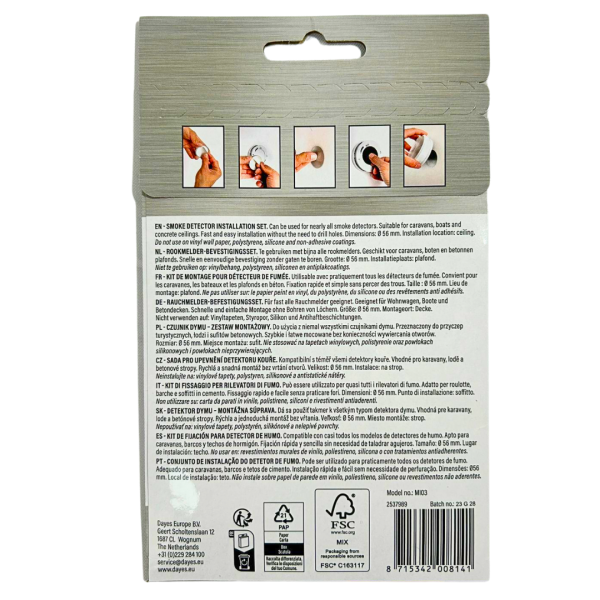 Das System ist universell einsetzbar für nahezu alle handelsüblichen Rauchmelder mit flacher Unterseite. Auch die Demontage ist denkbar einfach: Das Set lässt sich rückstandslos entfernen – ideal, wenn du den Melder versetzen oder bei einem Umzug mitnehmen möchtest.