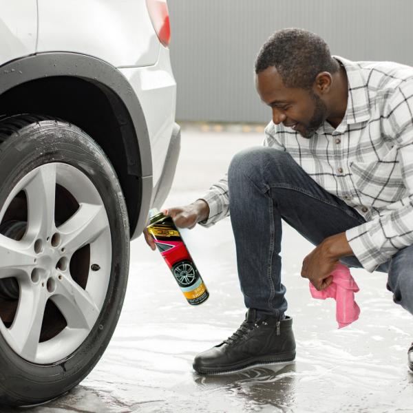 Mobile Preview: Anwendung Reifenspray auf Autoreifen